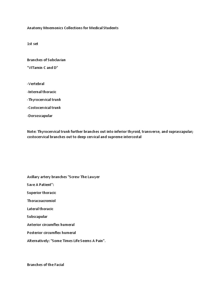 Subclavian artery branches (mnemonic) dr daniel macmanus and dr mohammad taghi niknejad et al. Second is the internal thoracic artery which runs in the opposite direction to the vertebral artery behind the sternum and costal cage. Vit c, d (as in vitamins c and d) In anatomy tags 15 branches of maxillary artery, branches of maxillary artery, maxillary artery, maxillary artery mnemonics january 21, 2017 14688 views hamza khan the maxillary artery also referred as an internal maxillary artery, it is one of the two terminal divisions between the continuations external carotid artery. Vit (sit) c (sid) and d.